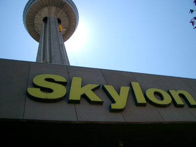 | 黄色い小さなエレベーターが見えましたか? このタワー自体は166mですが、 滝つぼからの高さが244mあるので、 このあたりをながめるには、 一番よい場所と、大変人気があります。 |
