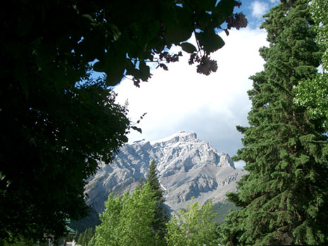 | これが、バンフの街を象徴する山。 カスケードとは、 白いレースという意味だそうです。 わたしたちのホテルの近くからも、 その美しい姿がよく見えました。 |