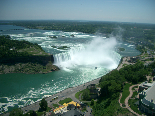 | トロントからバスに乗り2時間ほどで、ナイアガラの街へ。 そこのホテルに着いたときは、朝、4時半ころでした。 観光に備え一眠りします。 カナダ観光の最初は、ナイアガラの滝♪ こちらは、カナダサイドにある、カナダ滝です。 こんな街のなかにあるなんて、びっくりでした。 |